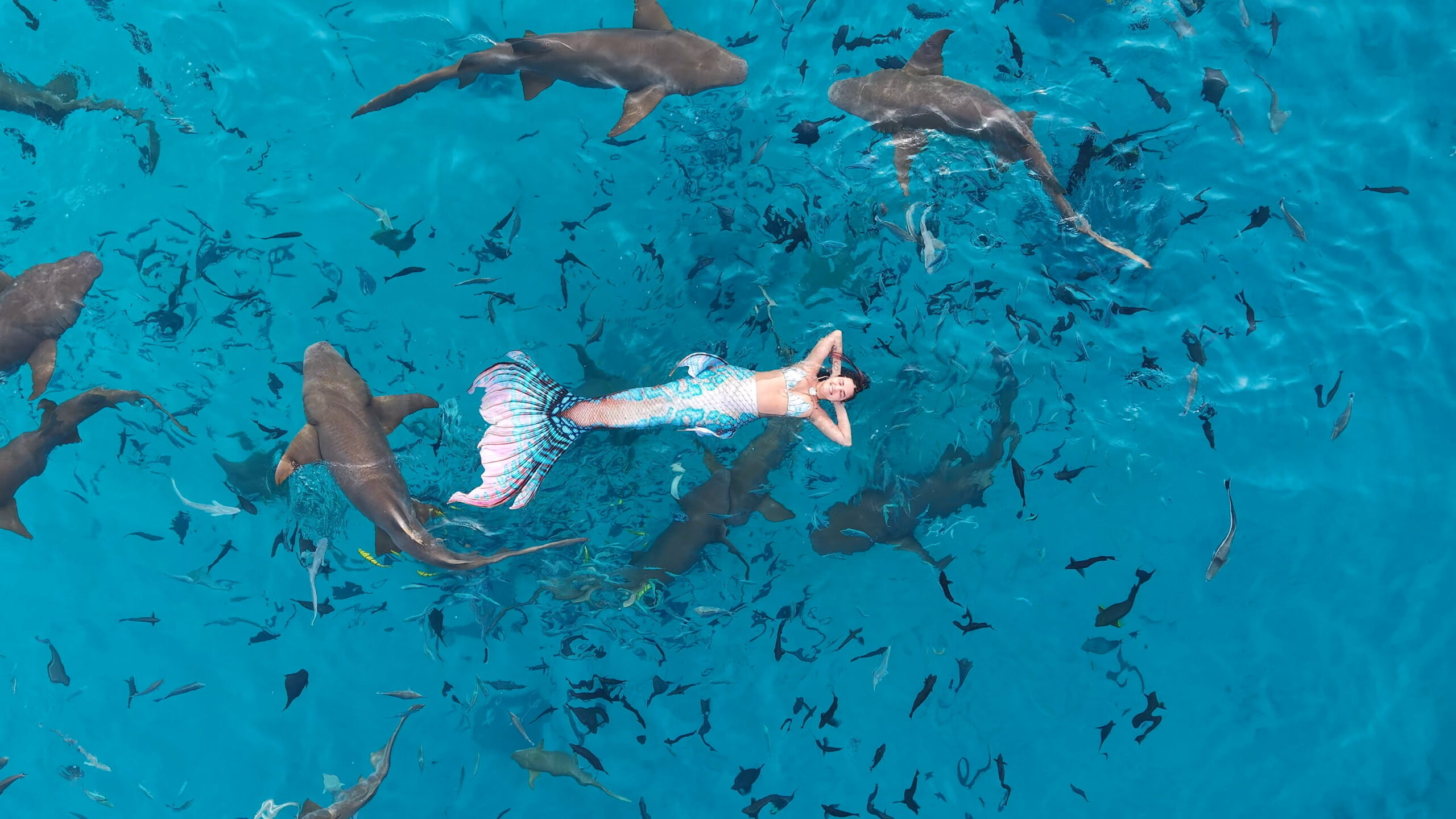 «Ένιωσα αρχικά βαθιά συγκίνηση μόλις είδα τους καρχαρίες κάτω από το νερό. Πρώτα κολυμπήσαμε μαζί τους με τις μάσκες κι έπειτα ήταν ώρα να φωτογραφηθούμε με τις ουρές μας. Ένιωσα ακόμη καλύτερα κολυμπώντας με την ουρά της γοργόνας, που για μένα είναι πλέον ένα κομμάτι του εαυτού μου», λέει και προσθέτει πως δεν τρόμαξε ούτε για στιγμή, κάτι εξάλλου που φαίνεται και από τις φωτογραφίες.
