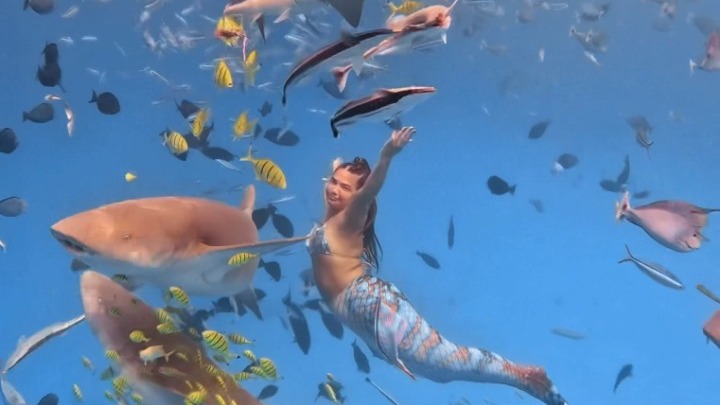 Στα τέλη του Γενάρη, με το θερμόμετρο να δείχνει πάνω από 30 βαθμούς στις μακρινές Μαλδίβες, η Θεσσαλονικιά «γοργόνα», Χαρίκλεια Μαρή, βούτηξε στα καταγάλανα νερά του ινδικού ωκεανού και κολύμπησε με καρχαρίες και τεράστια σαλάχια.