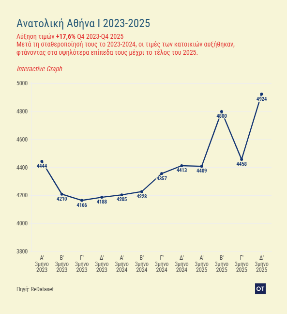 Ένα από τα πιο ενδιαφέροντα ευρήματα της ανάλυσης αφορά την Ανατολική Αττική. Για μεγάλο χρονικό διάστημα – κυρίως την περίοδο 2023–2024 – οι τιμές παρέμειναν σχετικά σταθερές.