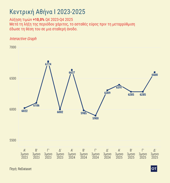 Στο κέντρο της Αθήνας η εικόνα ήταν διαφορετική. Οι τιμές κατέγραψαν άνοδο περίπου 10%, ωστόσο δεν ήταν ίδια σε όλες τις περιπτώσεις. Και αυτό γιατί η αγορά προσπαθούσε να προσαρμοστεί στο νέο καθεστώς.