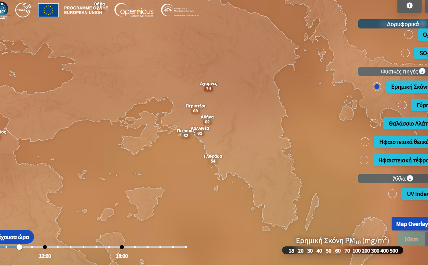 Μπορείτε να παρακολουθήσετε την πρόγνωση και την εξέλιξη του φαινομένου, σύμφωνα με τα δεδομένα της Υπηρεσίας για την Παρακολούθηση της Ατμόσφαιρας CAMS στο διαδικτυακό portal του AtmoHub: